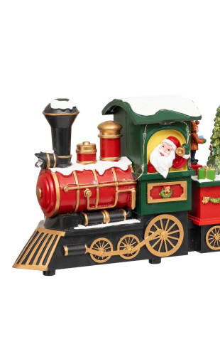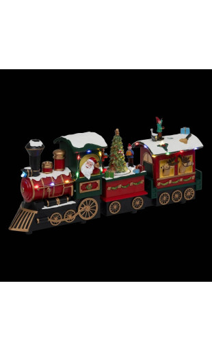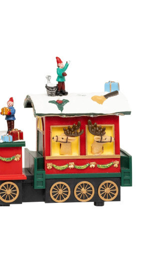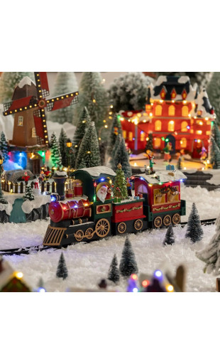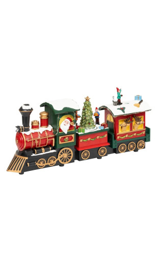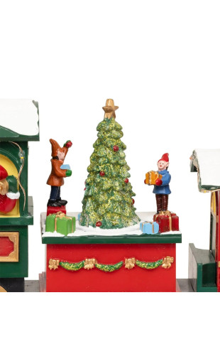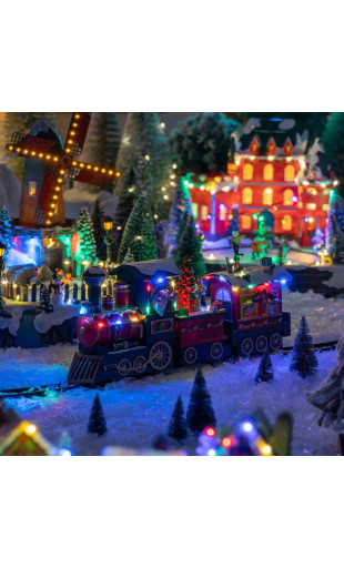 Plongez dans la magie de Noël avec ce village lumineux train du Père Noël ! Un décor animé et musical qui émerveillera petits et grands grâce à son éclairage féerique à 12 LED et son train en mouvement composé d’une locomotive et de deux wagons remplis de cadeaux.