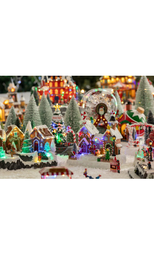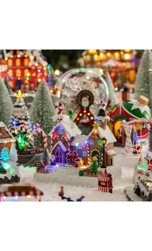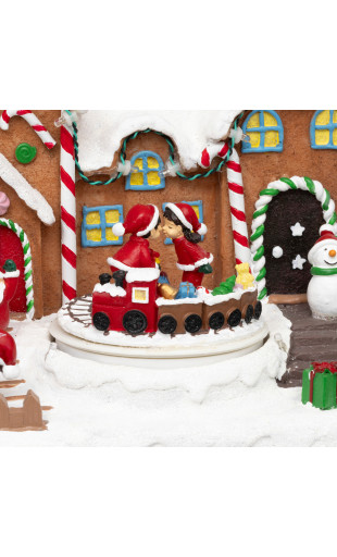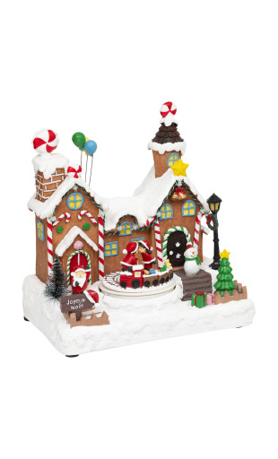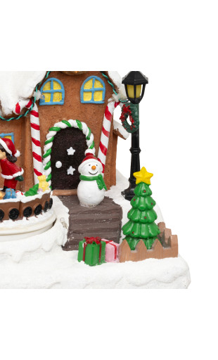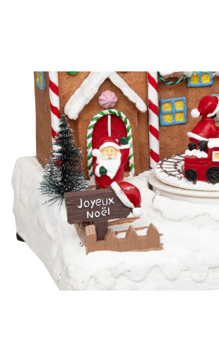 Plongez dans la douceur et la féérie des fêtes avec ce village de Noël lumineux maison pain d’épice ! Véritable concentré de tendresse et de magie, cette scène animée et musicale met en lumière deux enfants qui se font un bisou devant une adorable maison en pain d’épice.