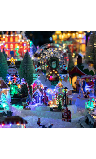 Installez votre maison pain d’épice lumineuse au centre d’un village de Noël miniature ou sur une console décorative entourée de sapins enneigés, personnages et guirlandes LED.