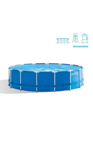 Prélassez-vous dans la piscine tubulaire ronde Metal Frame 4,57 m Intex avec accessoires, une solution fiable, spacieuse et facile à installer pour transformer votre jardin en véritable espace de détente et de loisirs.