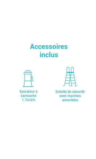 La plupart de nos piscines tubulaires sont livrées avec un système de filtration (hydro-aération qui améliore la sensation de fraîcheur et de pureté de l’eau) ainsi qu’une échelle de sécurité (auto-dérapante avec marches amovibles). Elles se composent de liners triple épaisseur en PVC qui assurent l’étanchéité de votre bassin et une résistance aux rayures. Les liners prennent parfaitement la forme du bassin grâce à la pression de l’eau (pour adhérer aux parois).